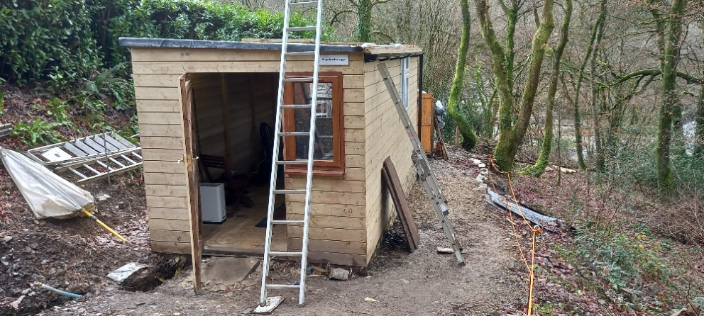 The new workshed is nearing completion and is now being fitted out inside. As well as partly providing a basic mess room facilities for volunteers, the shed will further permit workbenches and some storage shelving for the gang to continue a variety of restoration projects for along the whole railway. It will also support the maintenance of the Chelfham site and future enhancements and improvements.