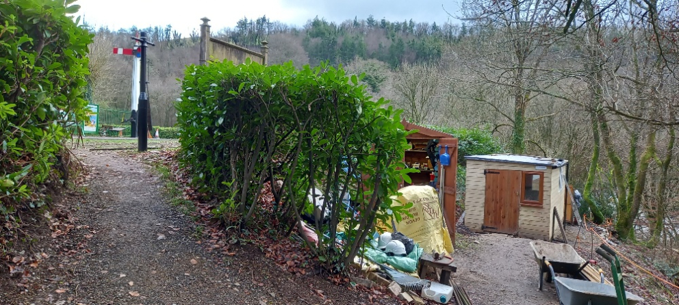 Most of the work throughout last autumn and this winter has been to build this wooden workshed located out of sight from the station building and platforms. Here's the view showing how the sheds are below the site line and accessed from the original path to the road.