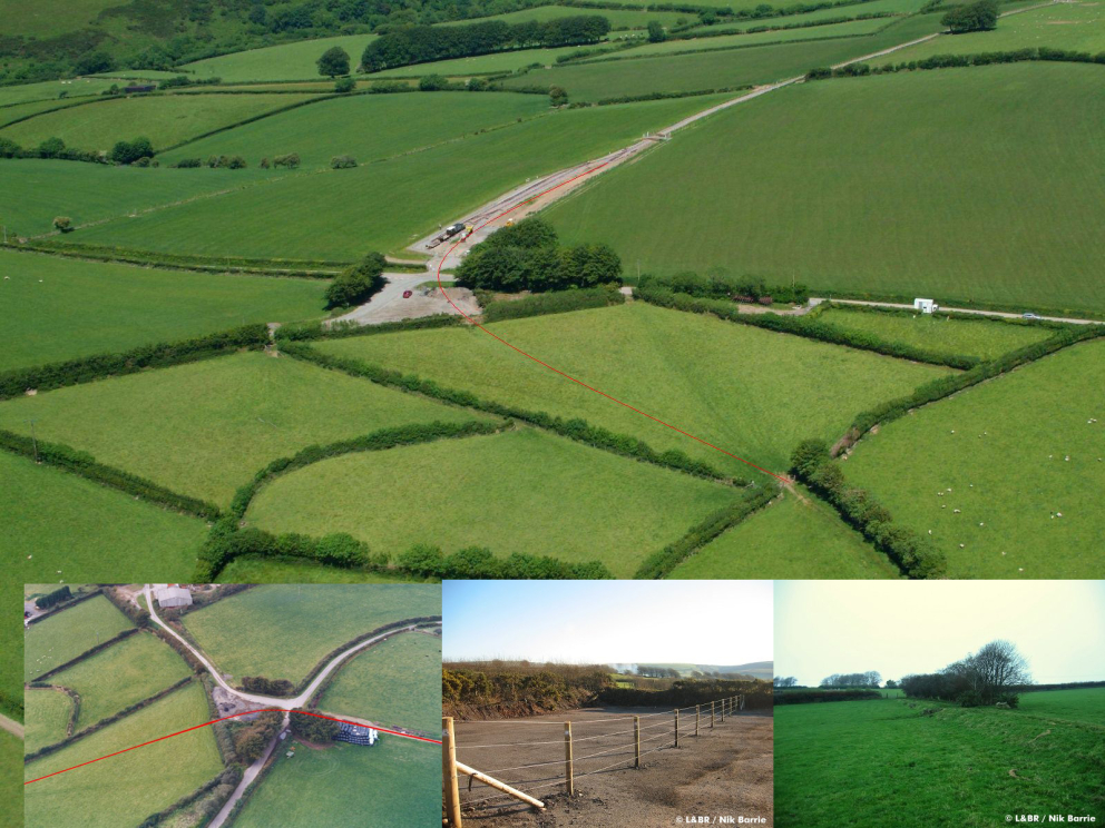 Beyond Killington Lane, the railway leaves a cutting and sweeps through the fields to Parracombe Lane. The bridge here is still intact (pictured) and just requires one new parapet wall one side and the fill excavated from both sides.