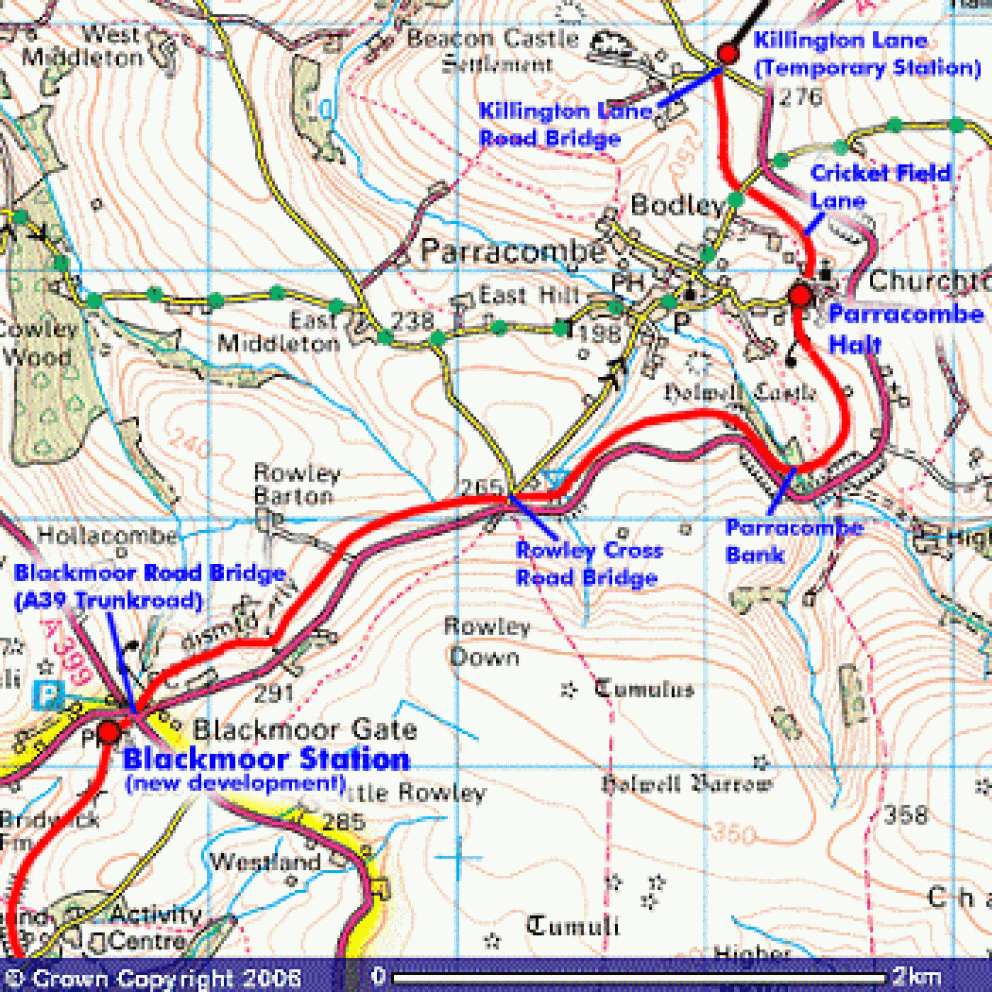 At Blackmoor Gate the railway would pass under the A39 using a new bridge, emerging on the site of Blackmoor Gate station (now the Old Station Inn). The railway's intent is that the pub and restaurant to continue to function as it is.