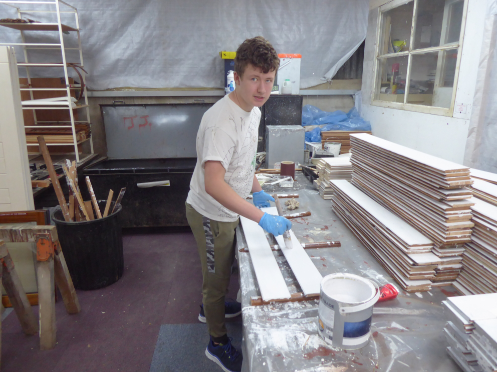 Youngest volunteer at the workshop is John Irons who has helped out during the school holiday period, accompanied by his father.