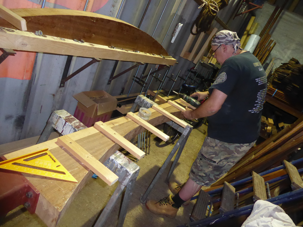 Dave Ely has constructed new clamps for laminating roof beams and other parts.
