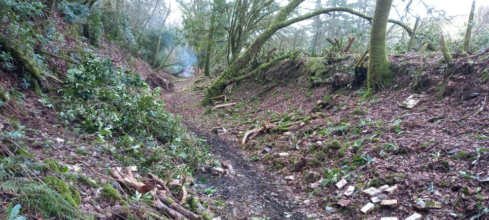 Last winter/early spring much tree and scrub clearance took place on the trackbed over the viaduct on the section up to Goodleigh Road Bridge. Access to this trackbed.... with special agreement courtesy of National Highways....is across the viaduct BUT only for working Volunteers. We have also been able to adjust the new gate and construct a ramp at the southern end of the viaduct to allow wheeled access onto the slightly lower trackbed here. The trackbed now is relatively clear and our occasional use of the resident Chelfham dumper truck is used to bring the piles of logs back.