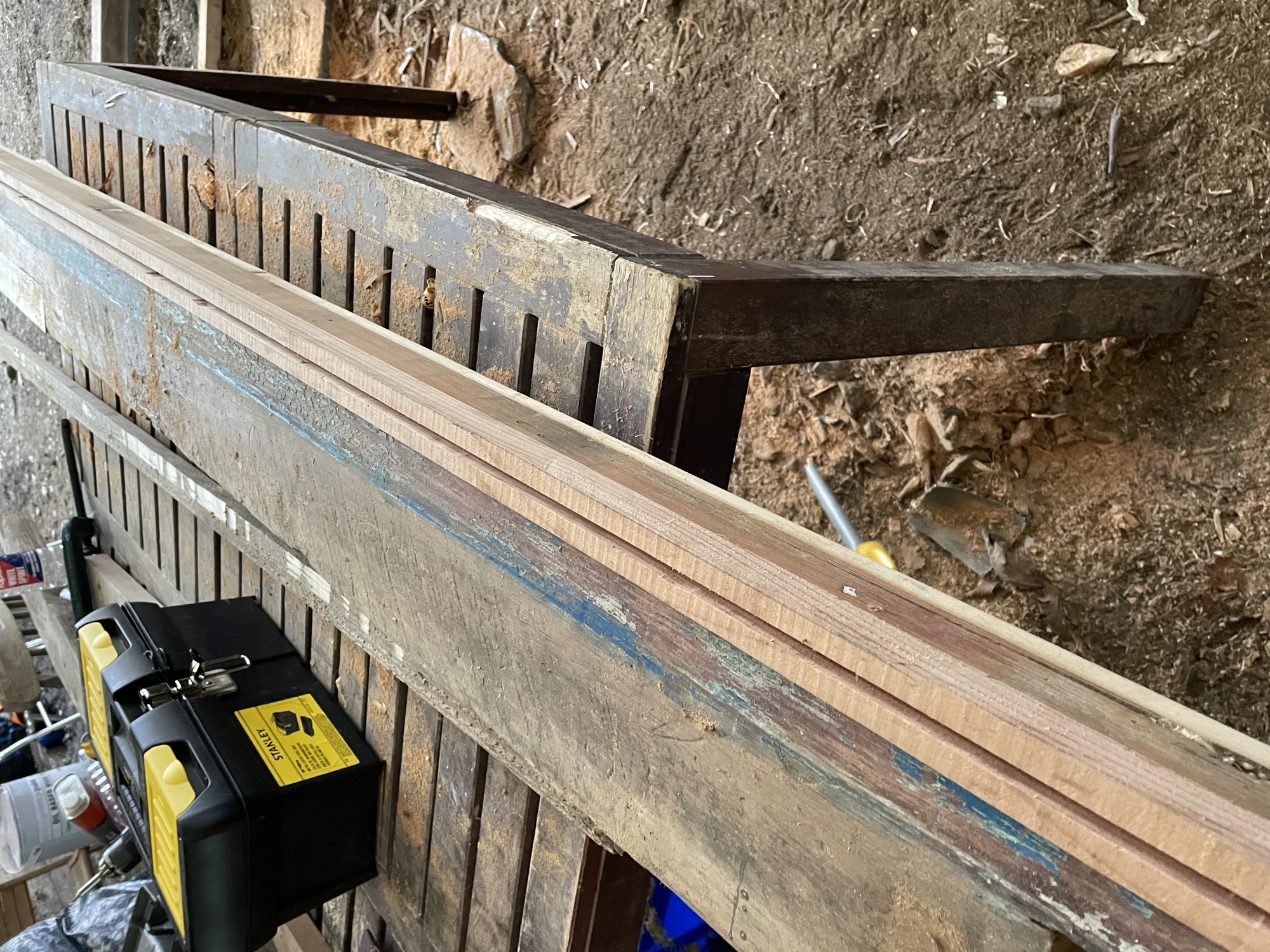 Repair work on the frame timbers seems never ending, with numerous sections of rot and historical damage needing to be replaced with new wood. The picture is the underside of the sill from the gable end facing the station, with a new drip channel section being rebated. (picture 3). The wood is Douglas fir, to match the original.