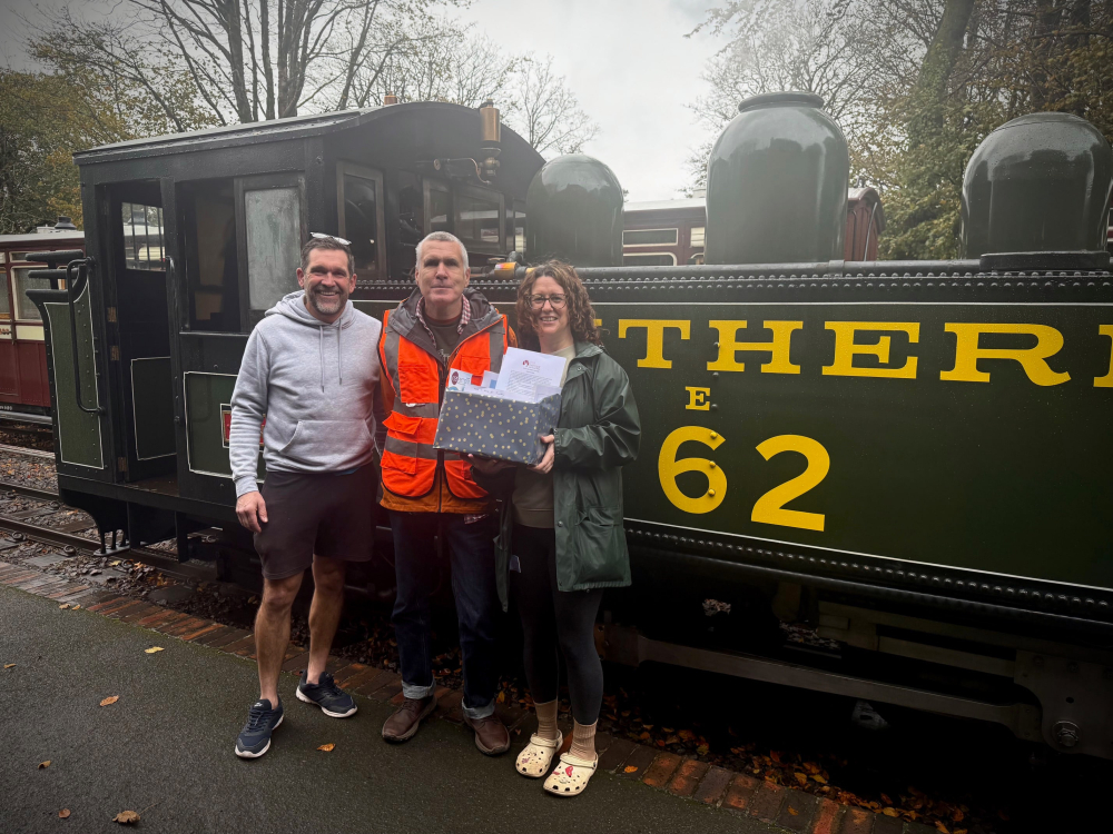 The winners can be seen in the picture above receiving their prize at Woody Bay station.