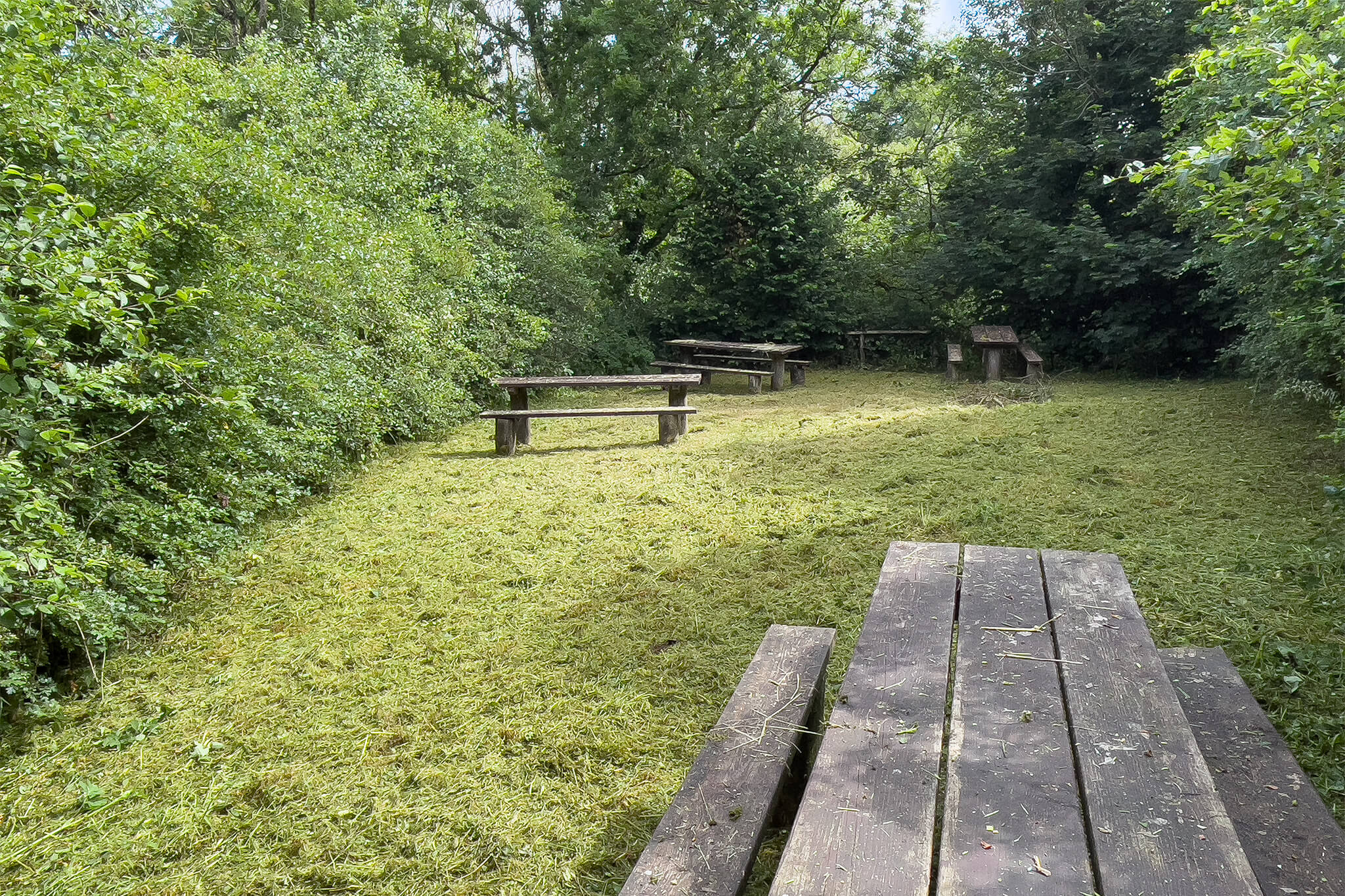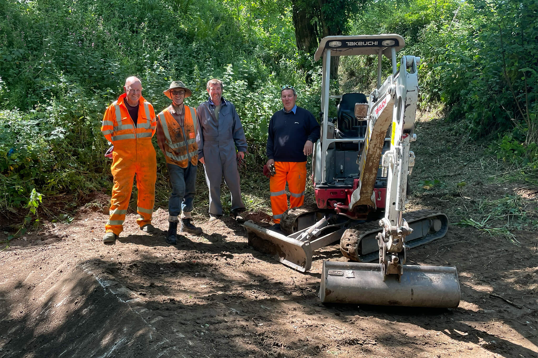 22nd June 2023. Much of the work undertaken by the Tuesday and Thursday Gangs this week was at the Rowley Cross picnic area, where the track bed was heavily overgrown, making access difficult. Additionally, surface water drainage from the A39 over time had deposited silt and debris in the gulley leading to the culvert underneath the track bed, with the potential to cause issues with the railway embankment due to flooding. All material was removed and the gulley cleared. The picnic area was also cleared of vegetation.